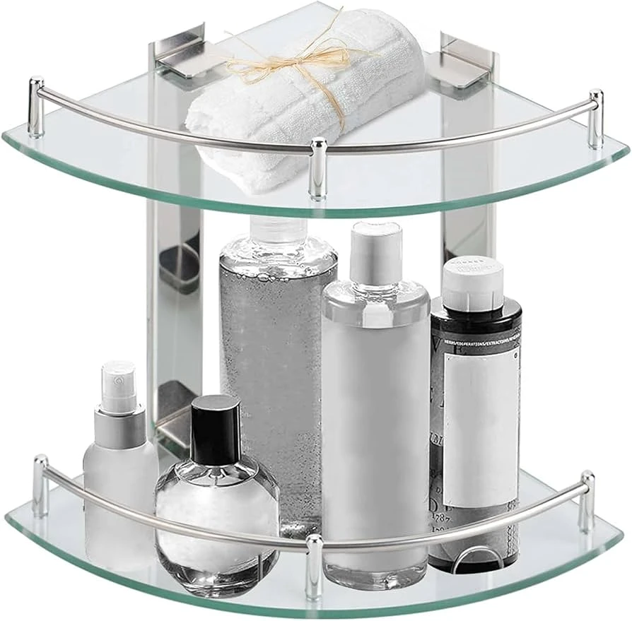 2 Layer Glass Corner Shelf for corner storage/ Wall Mount System
