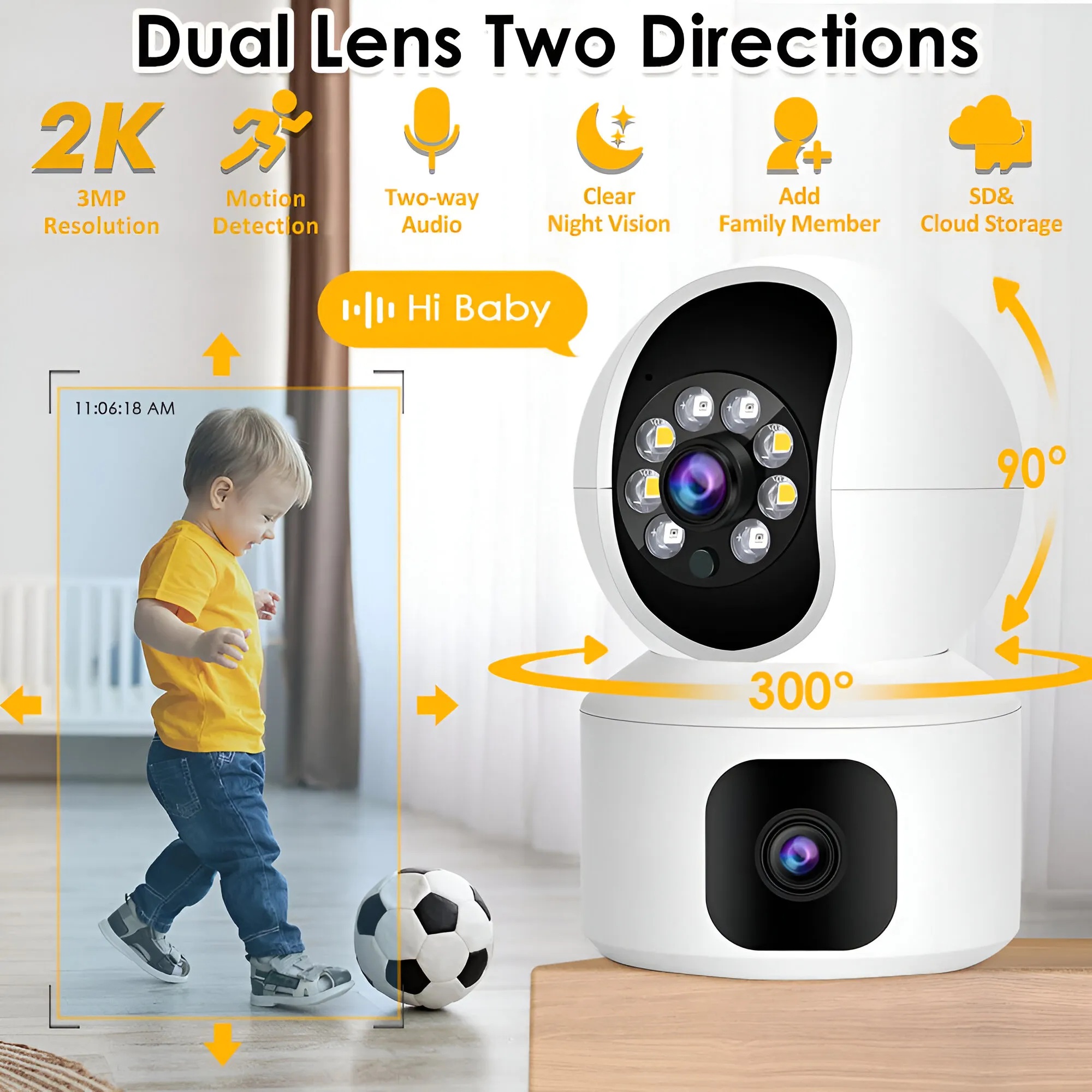 Enhance your home security with bReal Technology's 3MP + 3MP dual-lens indoor camera. Experience the ultimate in home surveillance with features like 360° pan and tilt, night vision, two-way audio, and remote monitoring. Keep your home safe and secure with Daraz. Enjoy clear 3MP video, night vision, two-way audio, and remote monitoring. Easy to install and perfect for home security.