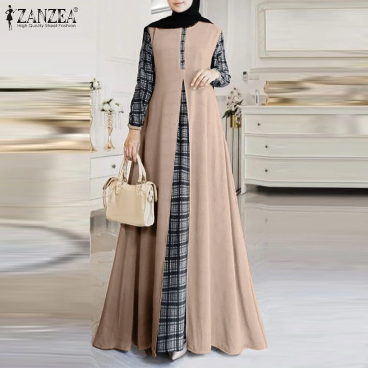 2025 Fashion Muslim Dress Abaya ZANZEA Women Patchwork Sundress Maxi Long Vestidos IsIamic Robe Eid Mubarek Long Sleeve Kaftan